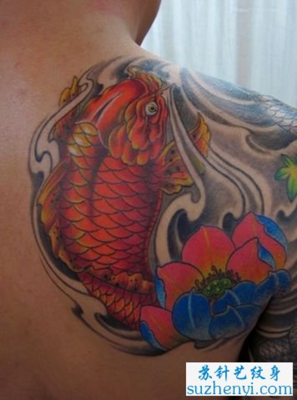 满背鲤鱼莲花纹身图案_鲤鱼纹身图案大全_纹身图吧