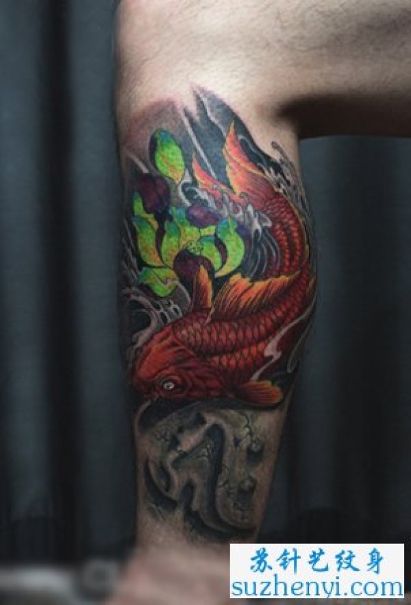 彩色鲤鱼莲花纹身_鲤鱼纹身图案大全_纹身图吧