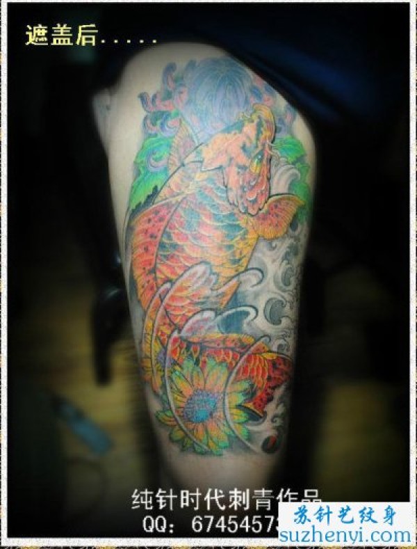 腿部彩色鲤鱼纹身_鲤鱼纹身图案大全_纹身图吧