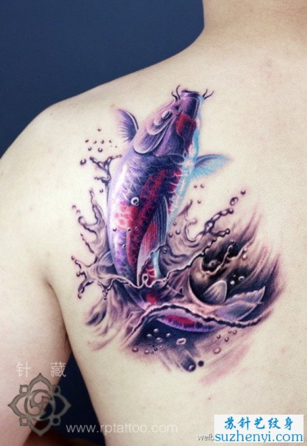 肩背彩色鲤鱼纹身_鲤鱼纹身图案大全_纹身图吧