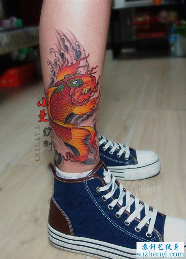 腿部彩色鲤鱼纹身_鲤鱼纹身图案大全_纹身图吧