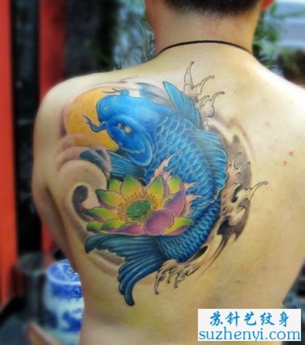 满背鲤鱼莲花纹身图案_鲤鱼纹身图案大全_纹身图吧