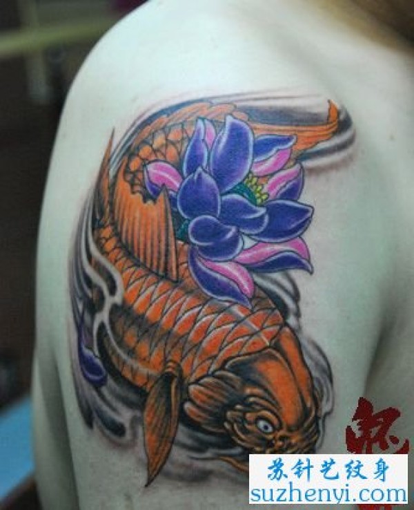 彩色鲤鱼莲花纹身_鲤鱼纹身图案大全_纹身图吧