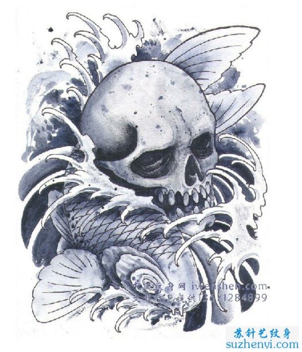 骷髅鲤鱼纹身图案_鲤鱼纹身图案大全_纹身图吧