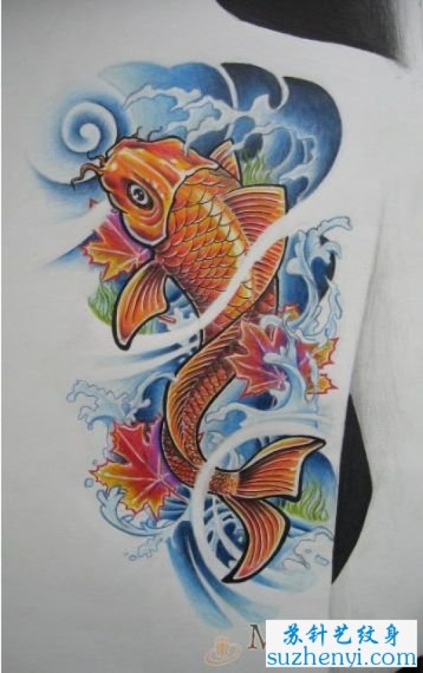 传统鲤鱼枫叶纹身_鲤鱼纹身图案大全_纹身图吧