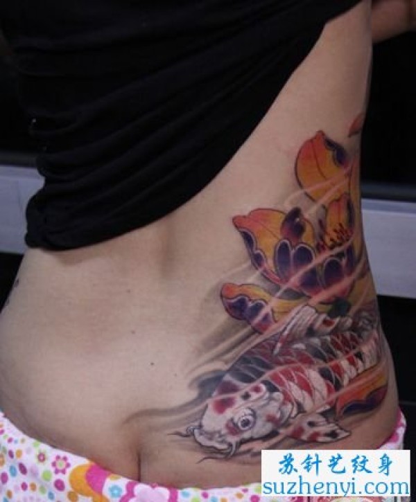 侧腰鲤鱼莲花纹身_鲤鱼纹身图案大全_纹身图吧