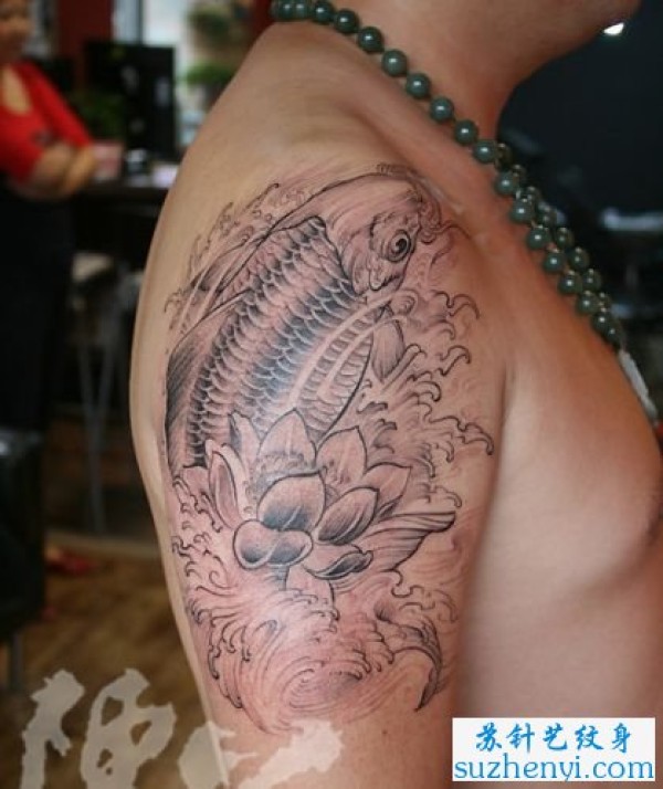 鲤鱼莲花纹身_鲤鱼纹身图案大全_纹身图吧