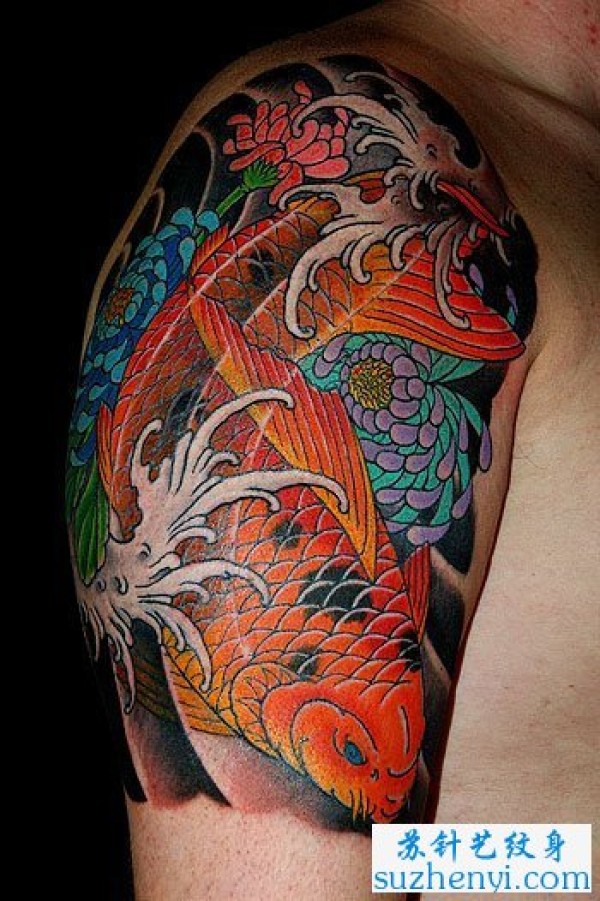传统彩色鲤鱼纹身_鲤鱼纹身图案大全_纹身图吧