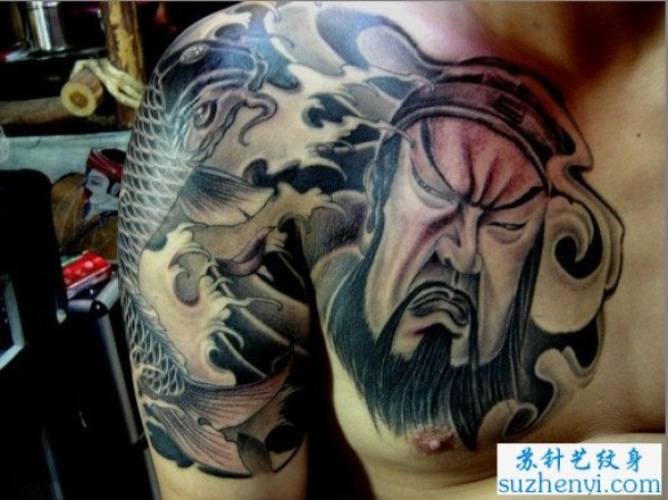 半胛关公鲤鱼纹身图案_鲤鱼纹身图案大全_纹身图吧