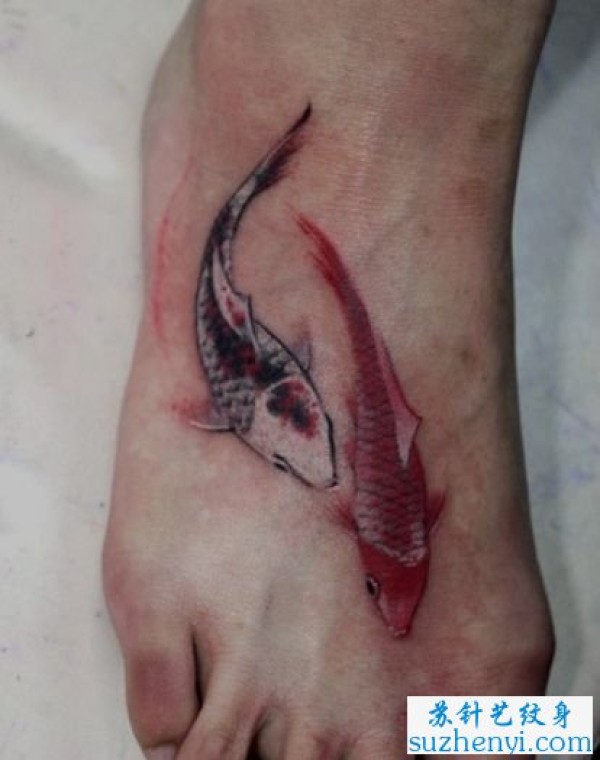 脚部水墨画小鲤鱼纹身图案_鲤鱼纹身图案大全_纹身图吧