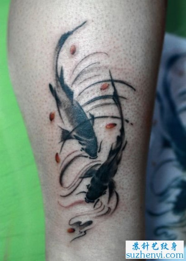 小腿水墨画鲤鱼纹身_鲤鱼纹身图案大全_纹身图吧