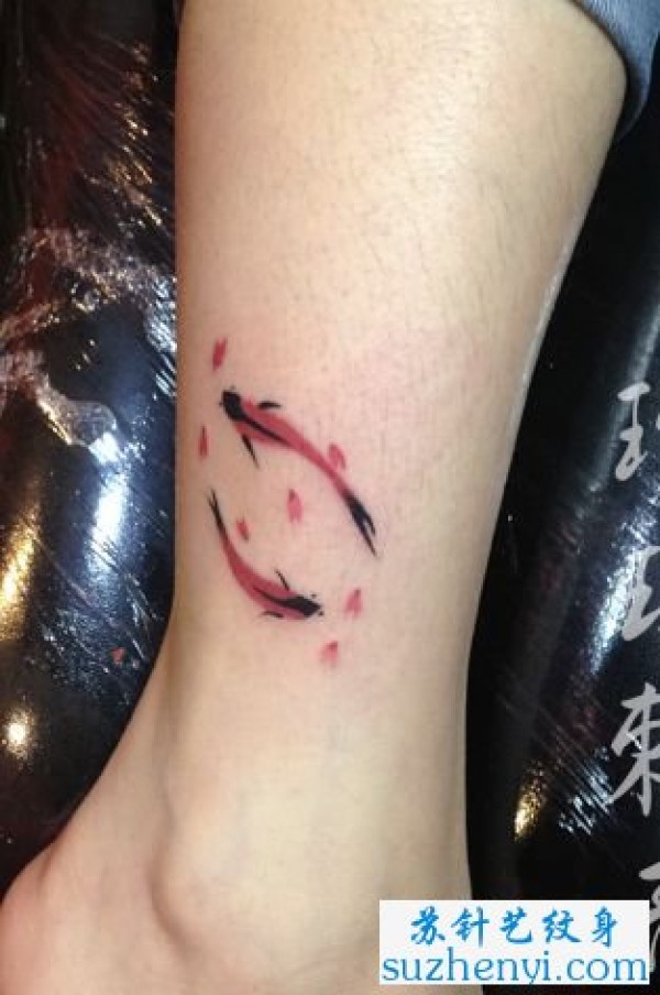 腿部水墨画鲤鱼纹身_鲤鱼纹身图案大全_纹身图吧