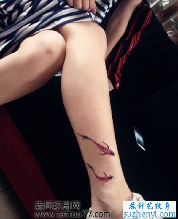 腿部小锦鲤纹身_鲤鱼纹身图案大全_纹身图吧