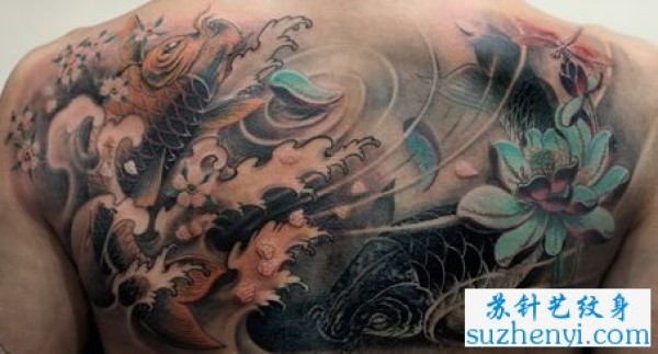 满背鲤鱼莲花纹身图案_鲤鱼纹身图案大全_纹身图吧