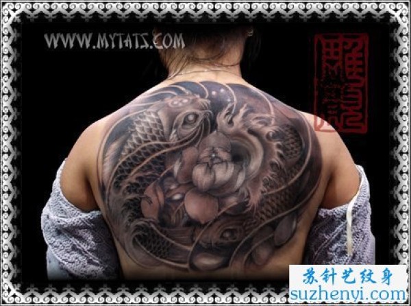 满背鲤鱼莲花纹身图案_鲤鱼纹身图案大全_纹身图吧