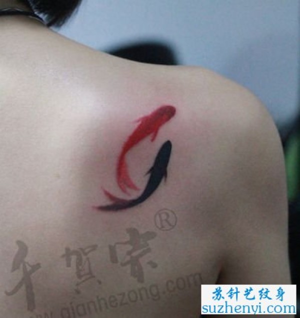 肩背水墨画小鲤鱼纹身_鲤鱼纹身图案大全_纹身图吧