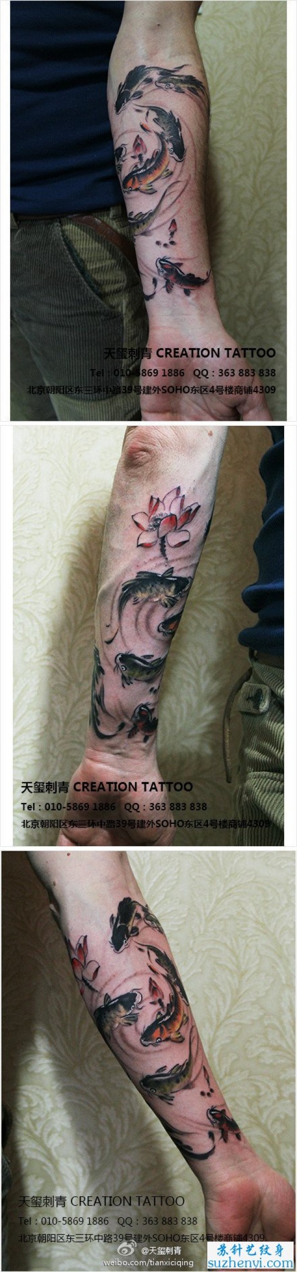 手臂水墨鲤鱼莲花纹身_鲤鱼纹身图案大全_纹身图吧