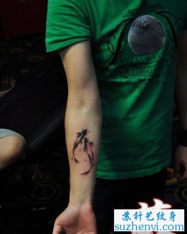 手臂水墨画风格小鲤鱼纹身_鲤鱼纹身图案大全_纹身图吧