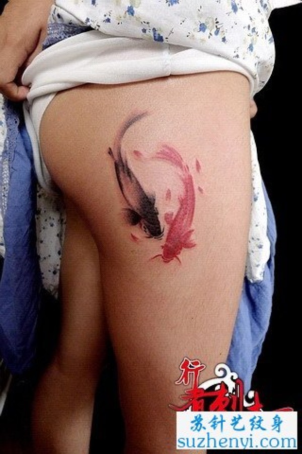 臀部的水墨画鲤鱼纹身_鲤鱼纹身图案大全_纹身图吧