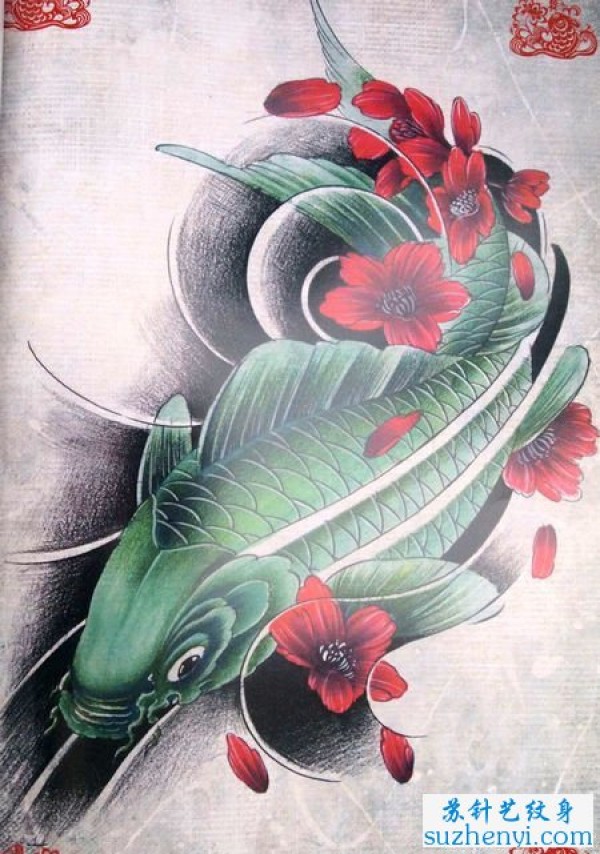 绿色鲤鱼纹身_鲤鱼纹身图案大全_纹身图吧