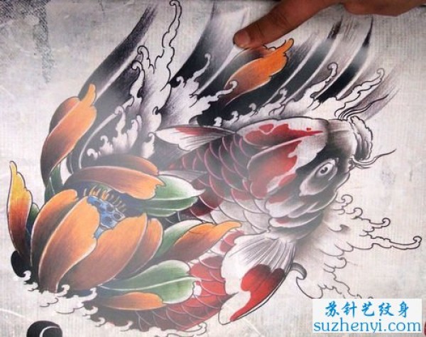 彩色荷花与鲤鱼纹身_鲤鱼纹身图案大全_纹身图吧
