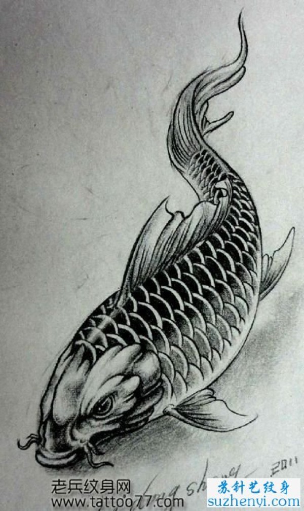 黑色鲤鱼纹身手稿_鲤鱼纹身图案大全_纹身图吧