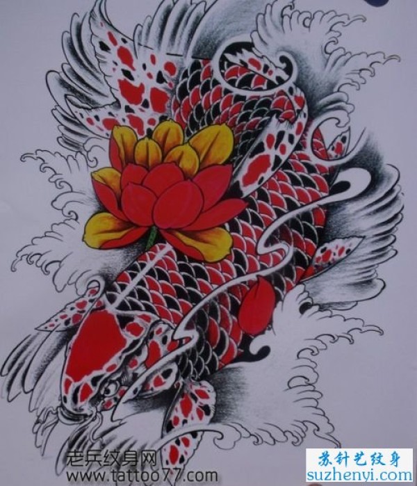 莲花鲤鱼纹身手稿_鲤鱼纹身图案大全_纹身图吧