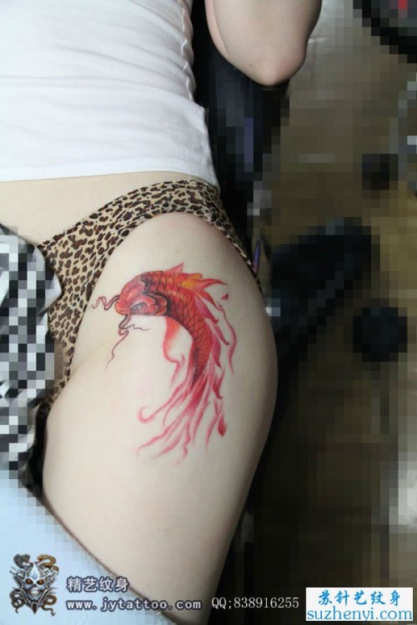 腿部彩色小鲤鱼纹身_鲤鱼纹身图案大全_纹身图吧