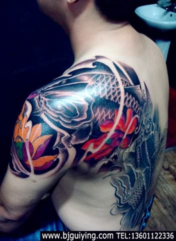 满背鲤鱼莲花纹身图案_鲤鱼纹身图案大全_纹身图吧