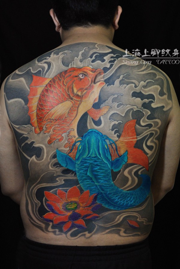 满背鲤鱼纹身_鲤鱼纹身图案大全_纹身图吧
