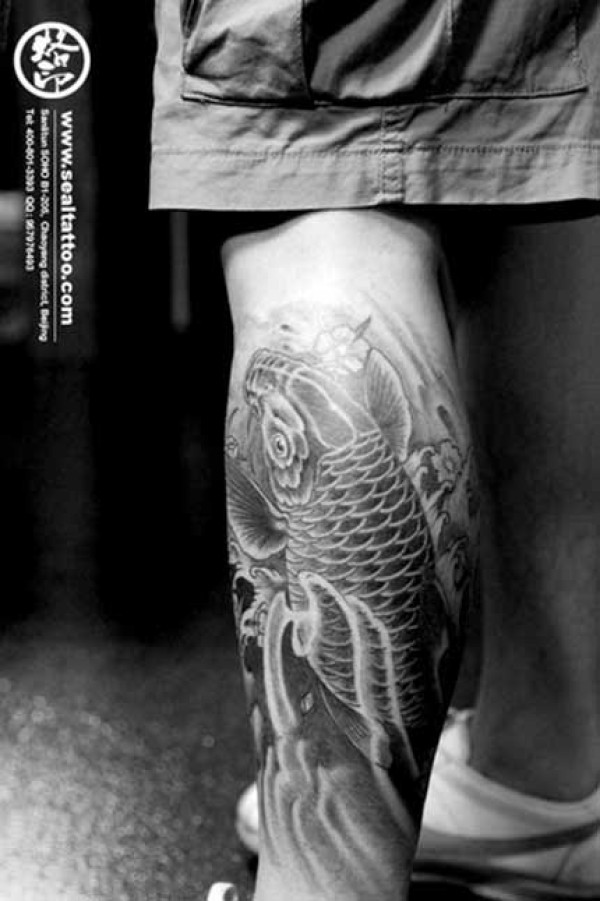 包腿鲤鱼纹身图案_鲤鱼纹身图案大全_纹身图吧