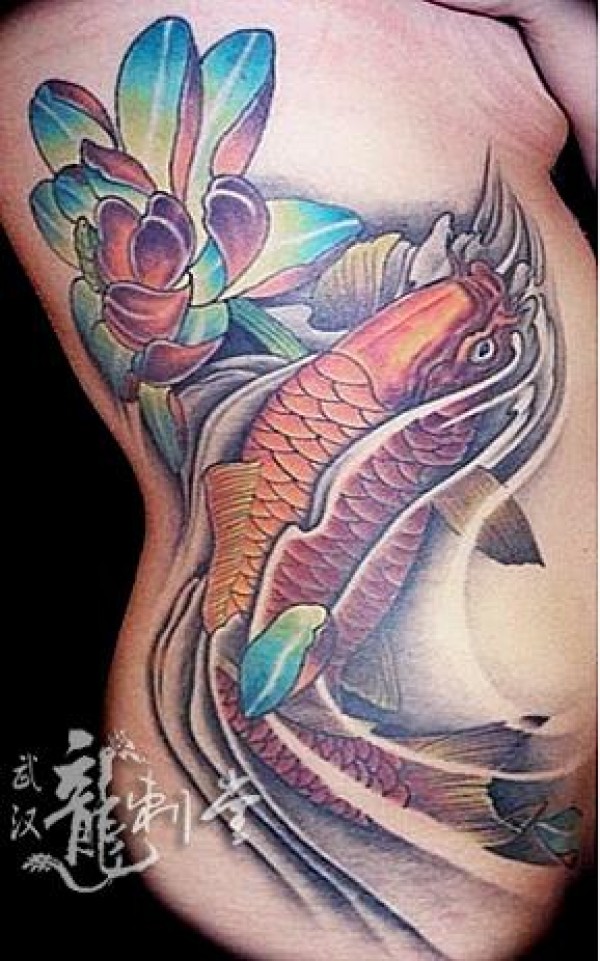 肋骨鲤鱼莲花纹身武汉技术好的纹身店_鲤鱼纹身图案大全_纹身图吧