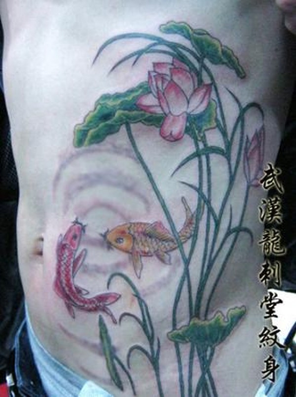 侧腰鲤鱼莲花纹身_鲤鱼纹身图案大全_纹身图吧