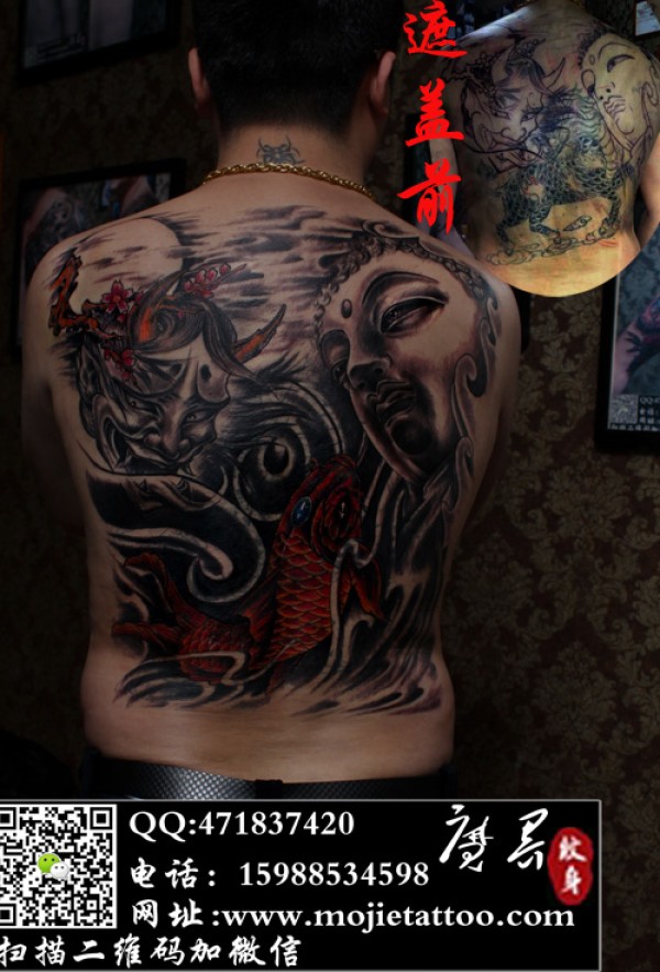 满背佛般诺鲤鱼遮盖失败麒麟纹身_鲤鱼纹身图案大全_纹身图吧