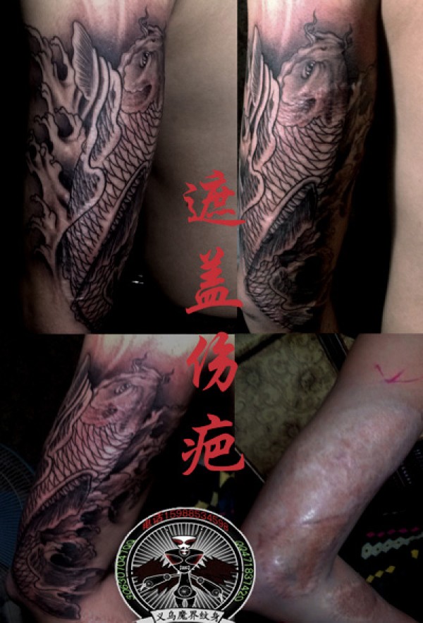 鲤鱼遮盖烫伤烧伤疤痕刺青_鲤鱼纹身图案大全_纹身图吧