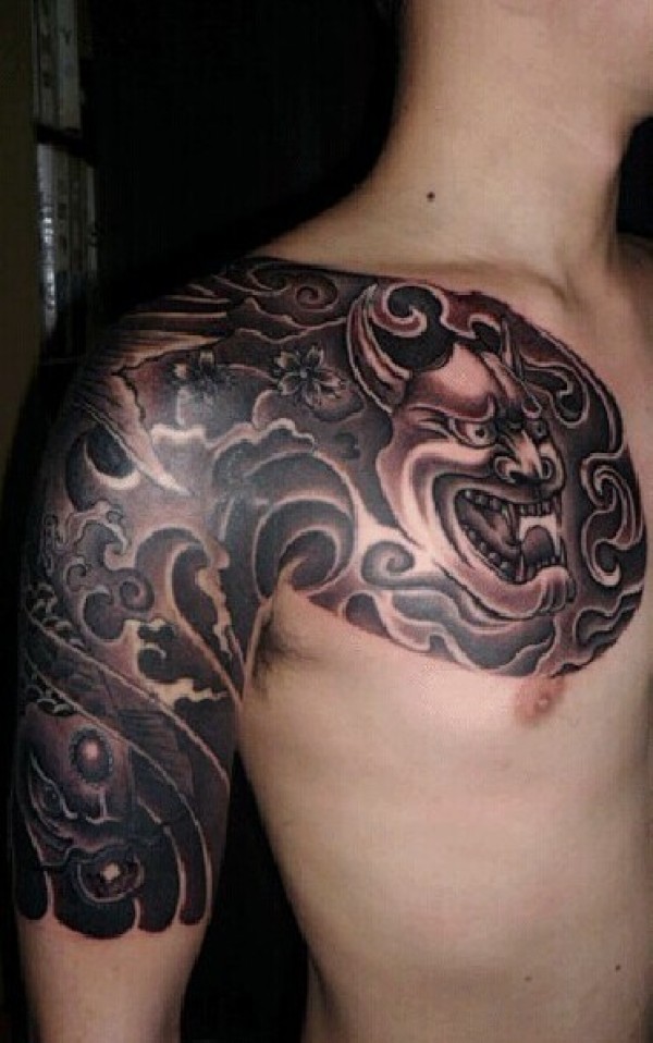 般若鲤鱼过肩纹身_鲤鱼纹身图案大全_纹身图吧