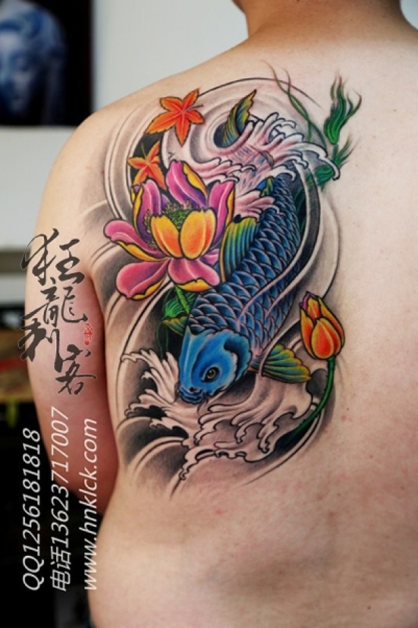 满背鲤鱼莲花纹身图案_鲤鱼纹身图案大全_纹身图吧