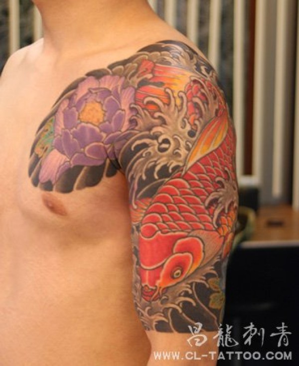 日式纹身半胛文身鲤鱼刺青_男士大图_鲤鱼纹身图案大全_纹身图吧