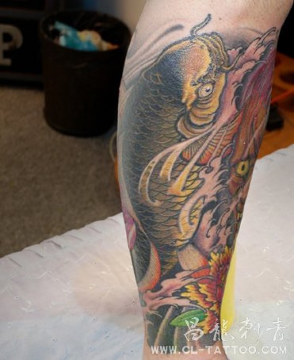 小腿彩色锦鲤_男士大图_鲤鱼纹身图案大全_纹身图吧