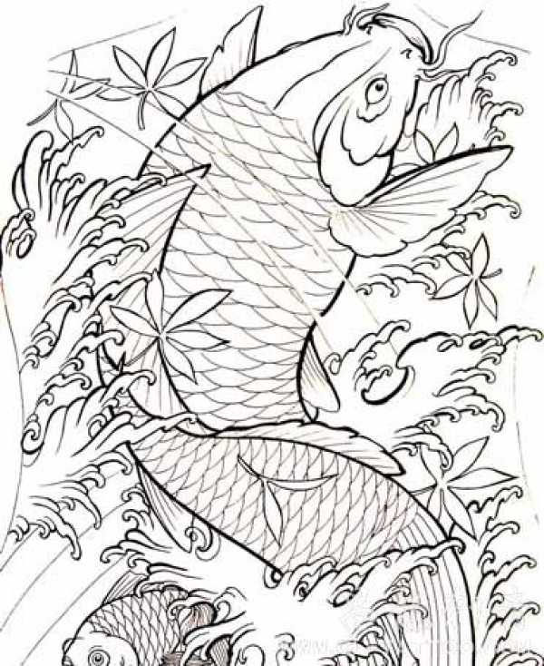 鲤鱼线稿纹身图_神兽动物_鲤鱼纹身图案大全_纹身图吧