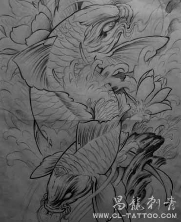 鲤鱼莲花纹身图案手稿_鲤鱼纹身图案大全_纹身图吧