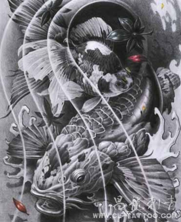 黑白鲤鱼纹身图案_鲤鱼纹身图案大全_纹身图吧