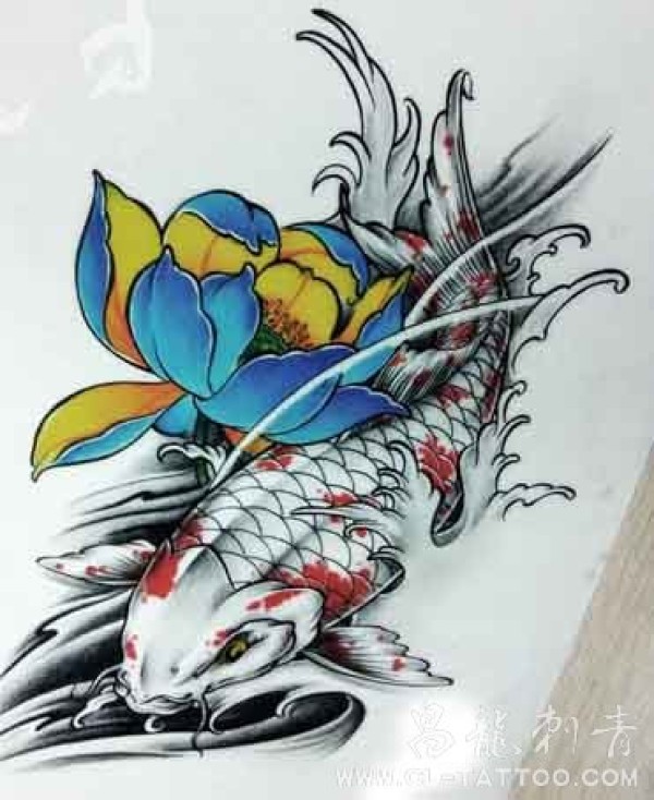 鲤鱼莲花纹身图案手稿_鲤鱼纹身图案大全_纹身图吧