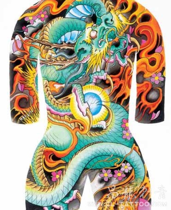 一组满背大气九龙拉棺纹身图案作品和手稿