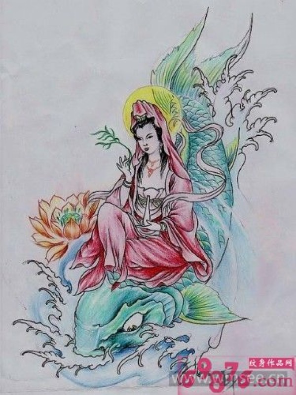 鲤鱼观音纹身图案手稿_鲤鱼纹身图案大全_纹身图吧