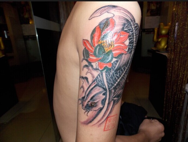 手臂荷花鲤鱼纹身_鲤鱼纹身图案大全_纹身图吧