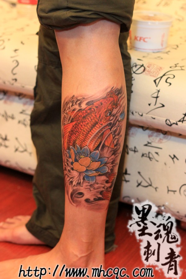 彩色小腿鲤鱼纹身_鲤鱼纹身图案大全_纹身图吧