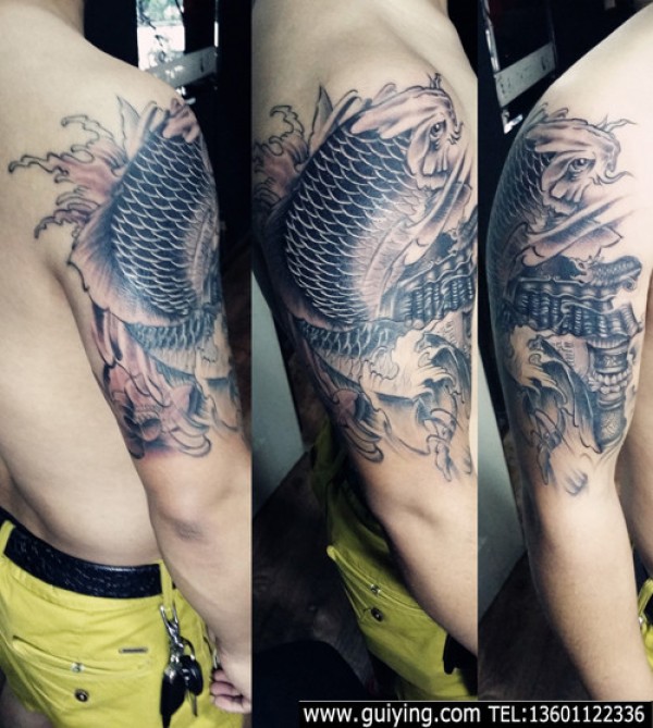 上臂招财鲤鱼纹身_鲤鱼纹身图案大全_纹身图吧