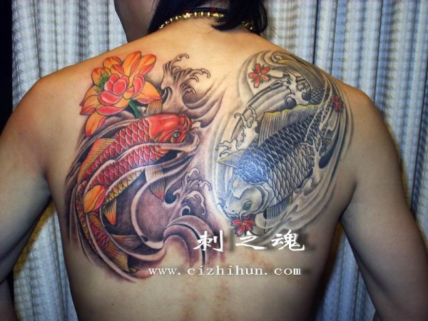 满背鲤鱼莲花纹身图案_鲤鱼纹身图案大全_纹身图吧