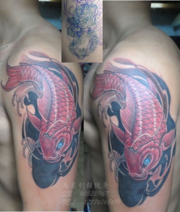 鲤鱼遮盖纹身、旧图遮盖、南昌纹身、南昌剑强_鲤鱼纹身图案大全_纹身图吧